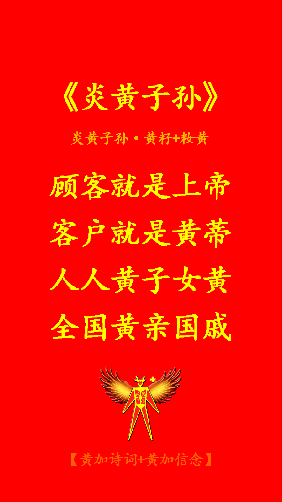 顾客就是上帝,客户就是黄蒂,人人炎黄子孙,全国黄亲国戚。